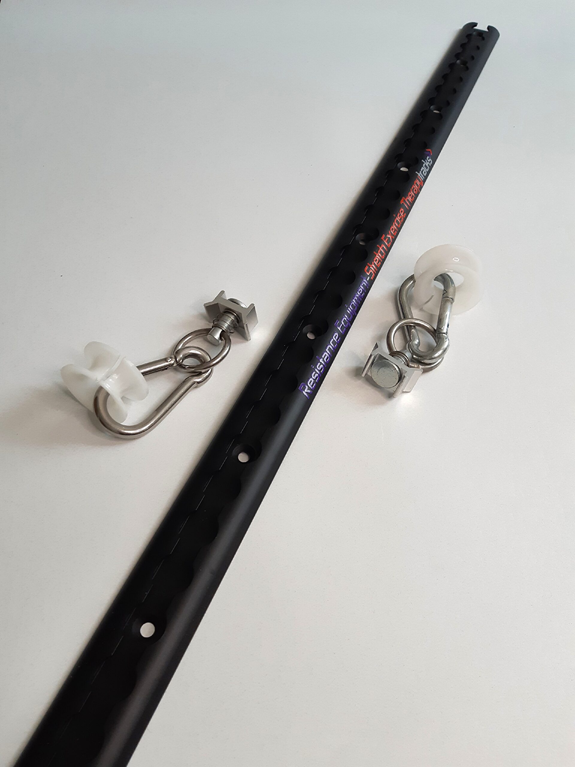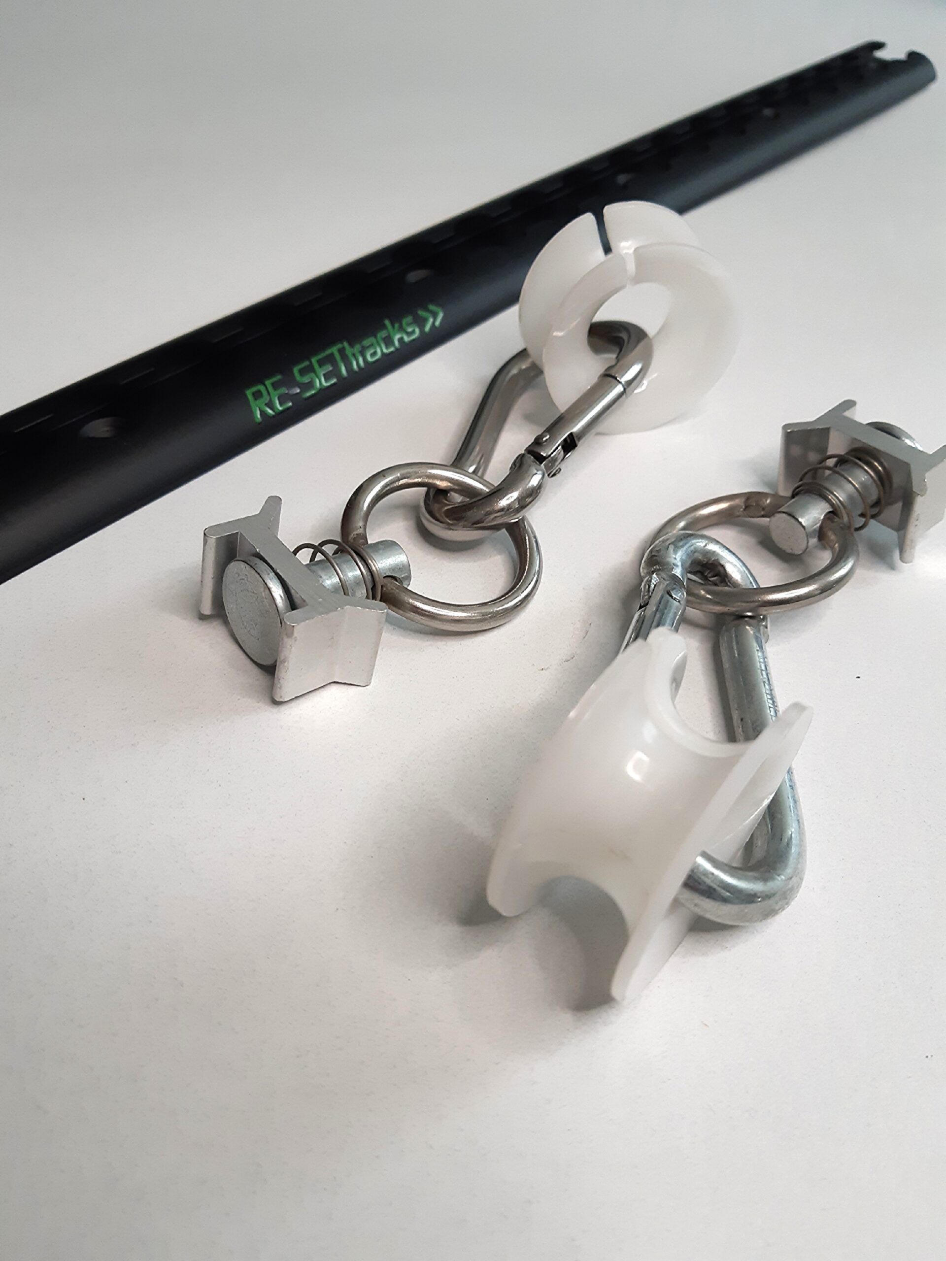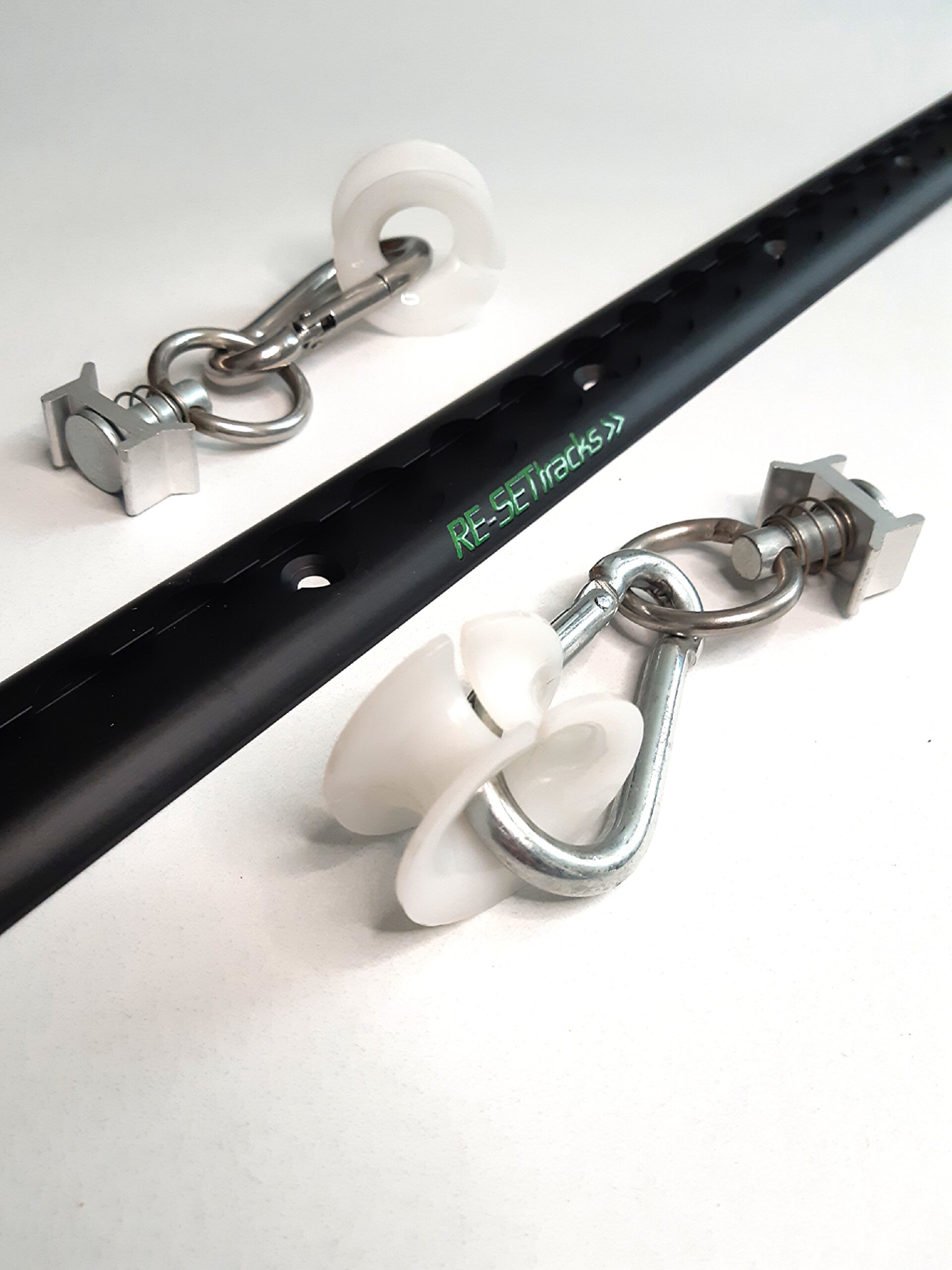 1 – 4 foot RE-SETtrack, 2 Connectors, 2 Carabiners, 2 Spools